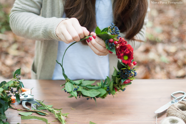 Qué maravilla de corona de flores naturales! Y a mi que me vuelven loca las coronas... Espectacular! Y las fotografías también son preciosas. Enhorabuena!